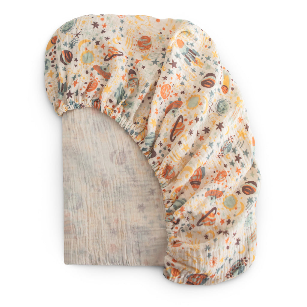 Made from 100% cotton, our cozy, extra soft muslin crib sheet is pre-washed for softness against baby's delicate skin. Muslin stays breathable while keeping your baby warm and cuddly.